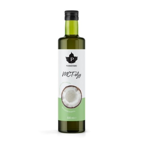 Puhdistamo MCT olje je visokokakovostno frakcionirano olje iz 100% kokosovega olja, ki vsebuje srednjeverižne trigliceride.